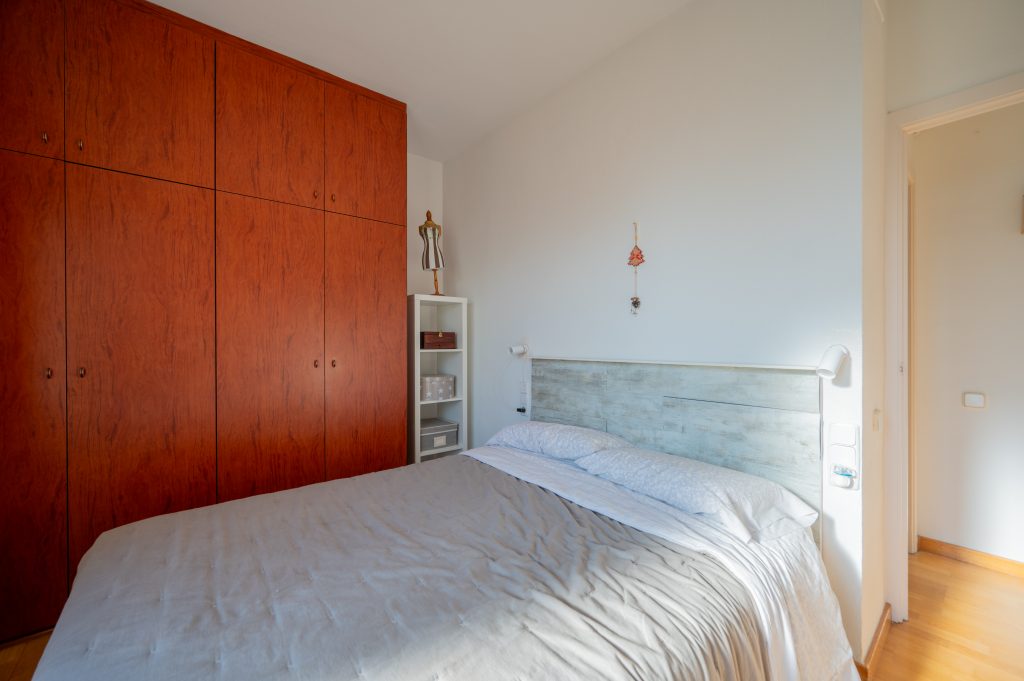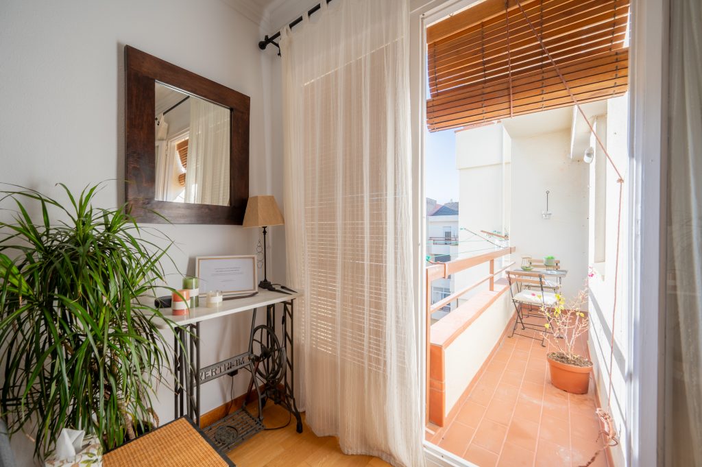 Al entrar en la vivienda, el espacio se percibe acogedor y equilibrado. El salón comedor se abre hacia un balcón que mira al patio interior, un rincón perfecto para disfrutar del aire y la luz sin renunciar a la privacidad. Desde la habitación principal también se accede al mismo balcón, lo que aporta una continuidad entre los espacios y acentúa la luminosidad del dormitorio. El segundo dormitorio, más pequeño, resulta ideal como habitación individual, despacho o estudio, y comparte la misma sensación de calma y luz exterior.