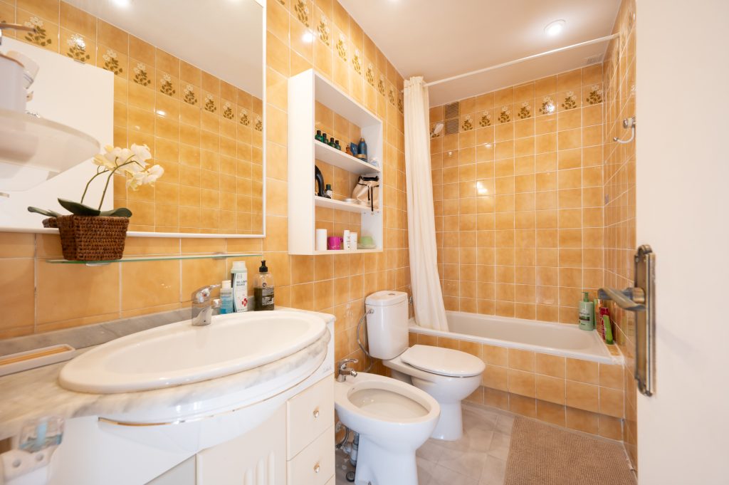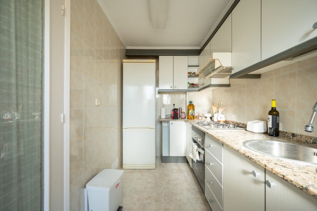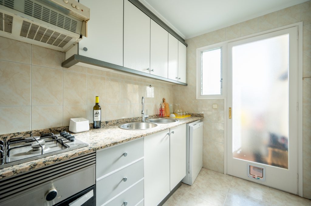 La cocina, totalmente independiente y funcional, es también exterior y cuenta con salida a un pequeño balconcito que aporta ventilación natural y comodidad añadida. El baño, de buen tamaño y equipado con bañera, se mantiene en buen estado y ofrece un ambiente práctico y cómodo.
