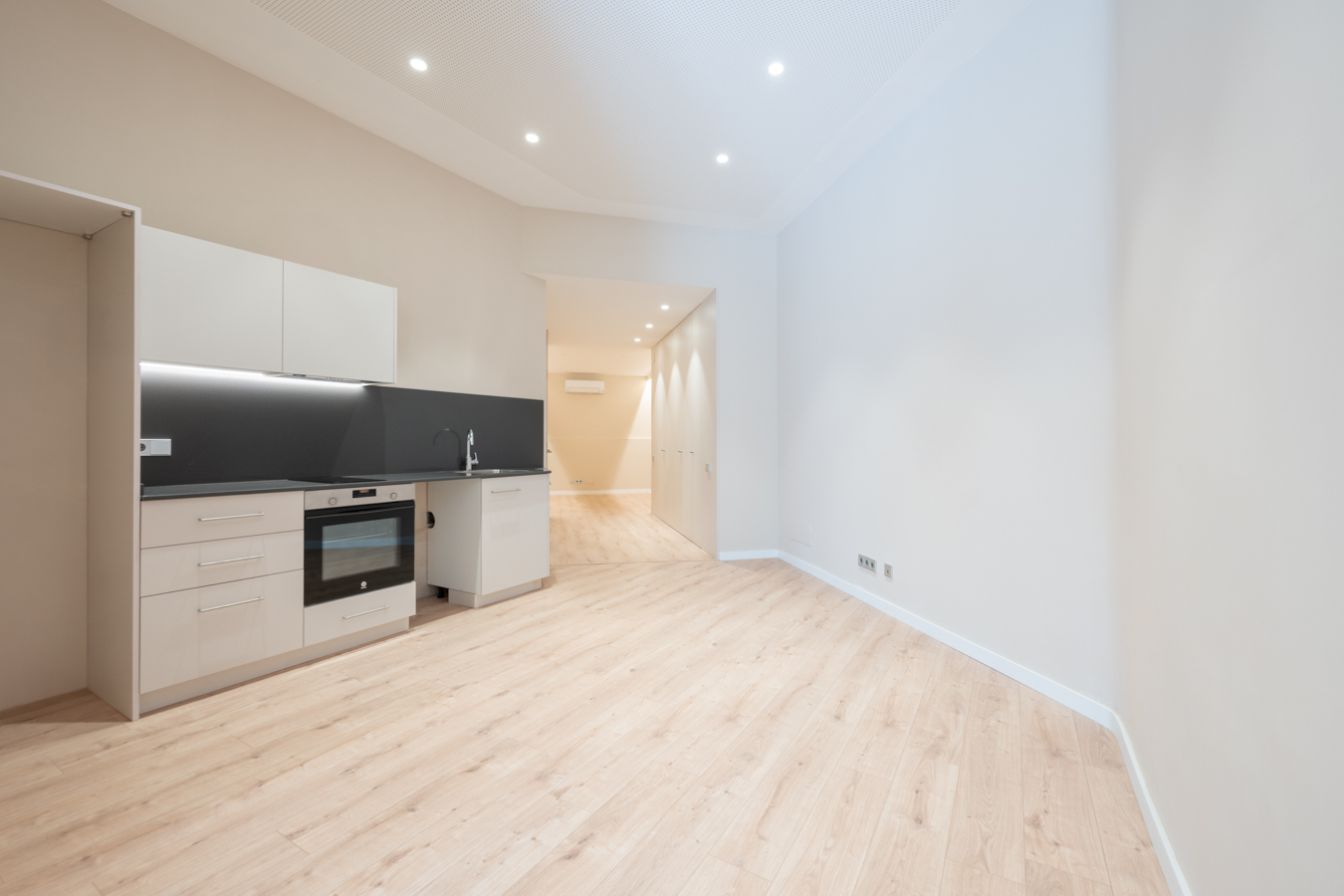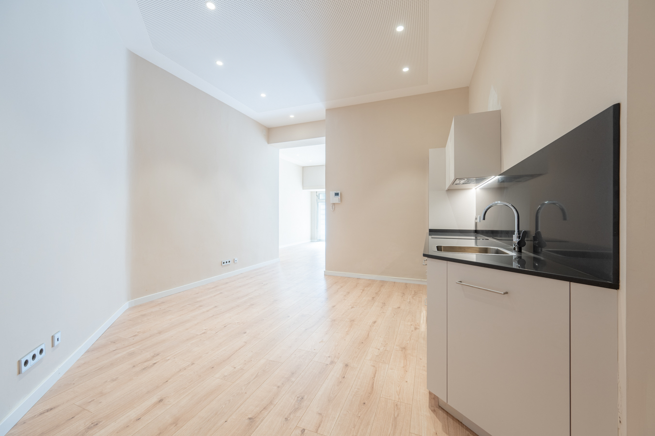 Estupenda oficina reformada a estrenar en ubicación privilegiada 1300€ + IVA Tipo de negocio: Dirigido a oficinas, despachos. Te presentamos esta fantástica oficina completamente reformada, ideal para profesionales o empresas que buscan un espacio moderno, funcional y bien ubicado. El inmueble es totalmente diáfano, pero su distribución permite delimitar diferentes zonas de trabajo sin necesidad de hacer reformas. Al acceder, nos encontramos con una entrada con ventanal de cristales translúcidos que aporta luz natural y privacidad. Esta área puede destinarse perfectamente a recepción o zona de trabajo con varios puestos de escritorio. Avanzando hacia el interior, encontramos una práctica zona de cocina y, a continuación, tres amplios armarios empotrados que ofrecen gran capacidad de almacenamiento. Enfrente, se sitúa un baño completo, moderno y funcional. Al fondo de la oficina, se ubica un espacio ideal para sala de reuniones o despacho principal, que se puede delimitar para mayor privacidad. La oficina cuenta con suelos de parquet, techos altos e insonorizados, y sistema de climatización con bomba de calor mediante dos splits (uno en la entrada y otro al fondo del local), garantizando confort durante todo el año. Además, la instalación eléctrica es completamente nueva, con distintos diferenciales para mayor seguridad, cableado y enchufes para maxima velocidad de datos en todas las estancias. Ubicación inmejorable, a pocos pasos del Passeig de Sant Joan y de la Avenida Diagonal, en una zona estratégica rodeada de transporte público, parkings y todo tipo de servicios: comercios, restaurantes, bancos y más. Una excelente oportunidad para establecer tu negocio en un entorno profesional, bien comunicado y con una imagen moderna.